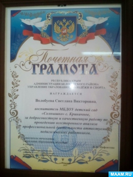 Воспитателю средней группы "Почемучки" Волобуевой Светлане Викторовне
