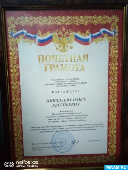 Воспитателю первой младшей группы "Пуговки" Николаевой Ольге Евгеньевне